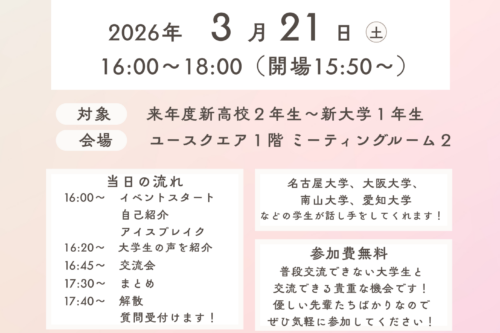 名古屋市青少年交流プラザは、青少年の「成長したい」思いを応援する施設です。様々な体験プログラムや、「やってみたい」ことを実現していくプロセスを通して、仲間とのつながりを深めたり、自分の新たな可能性に気付いたりする。そんな経験をプラザでしてみませんか。