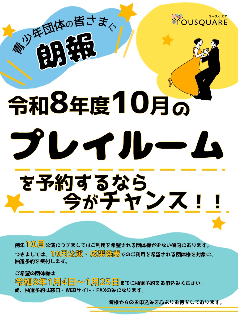 令和8年度10月 公演・成果発表抽選予約のご案内【ユースクエア】
