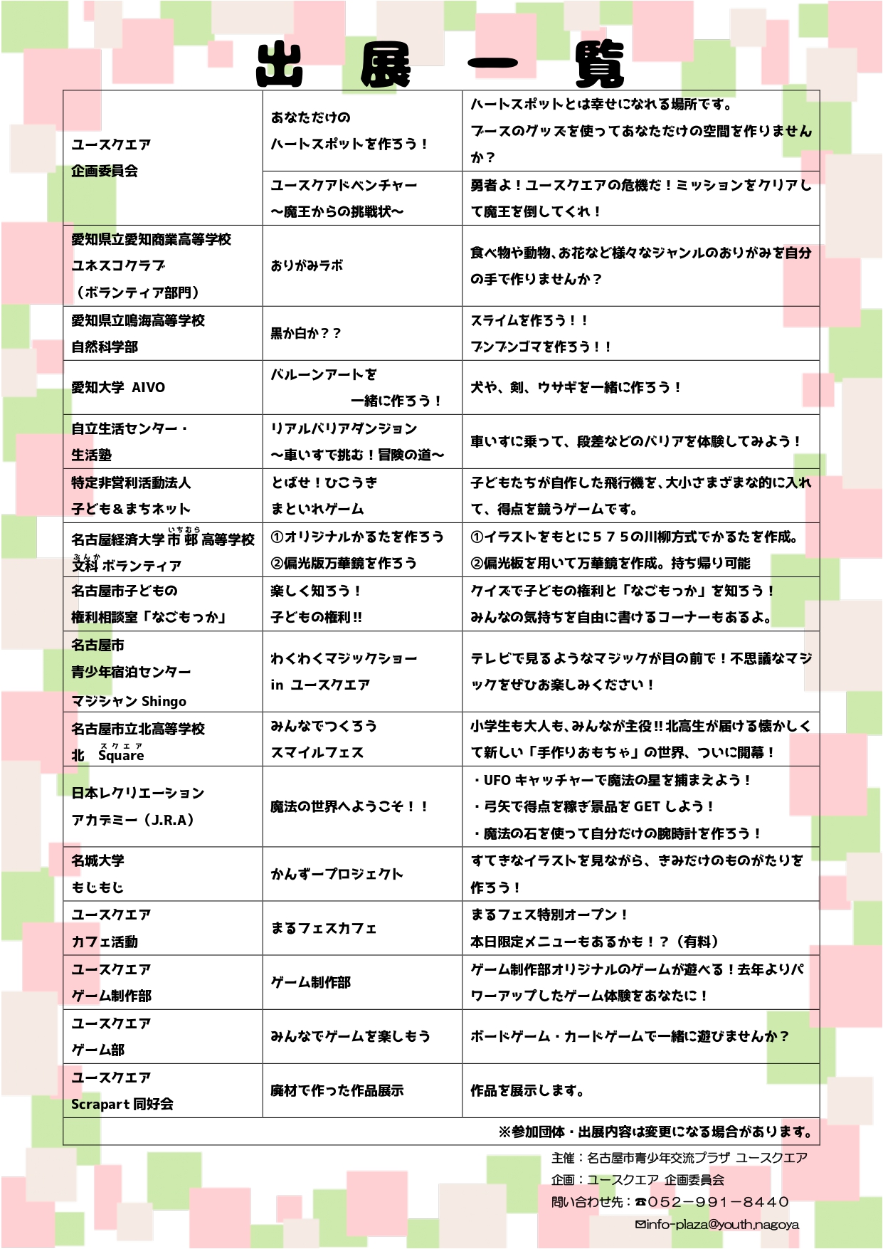 場所:名古屋市青少年交流プラザ本館ユースクエア