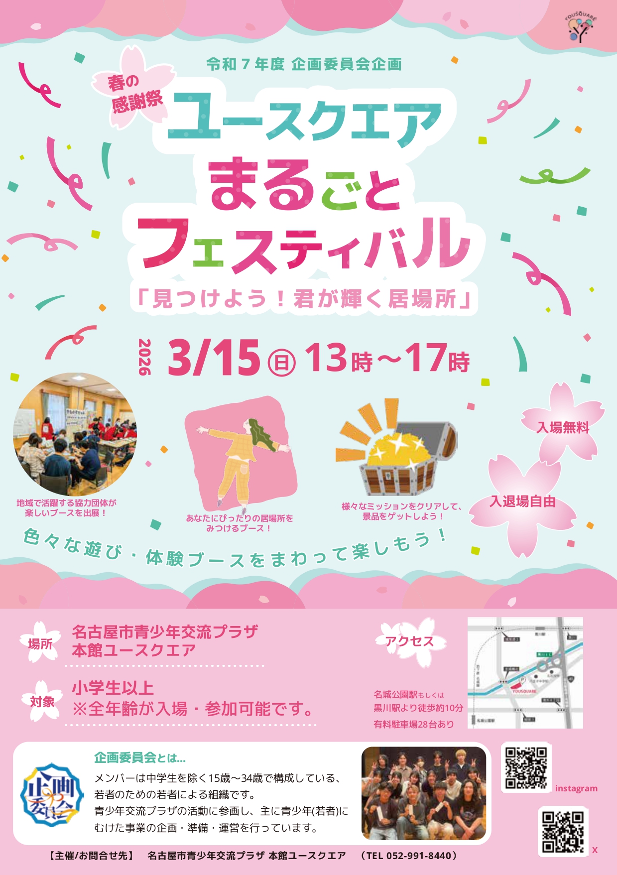 🌸企画委員会企画「春の感謝祭✨ユースクエアまるごとフェスタ~見つけよう!君が輝く居場所~」開催🌸