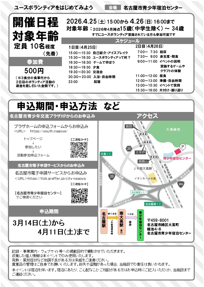 🎈ユースボランティアをはじめてみよう!🎈 の申し込みが始まりました。