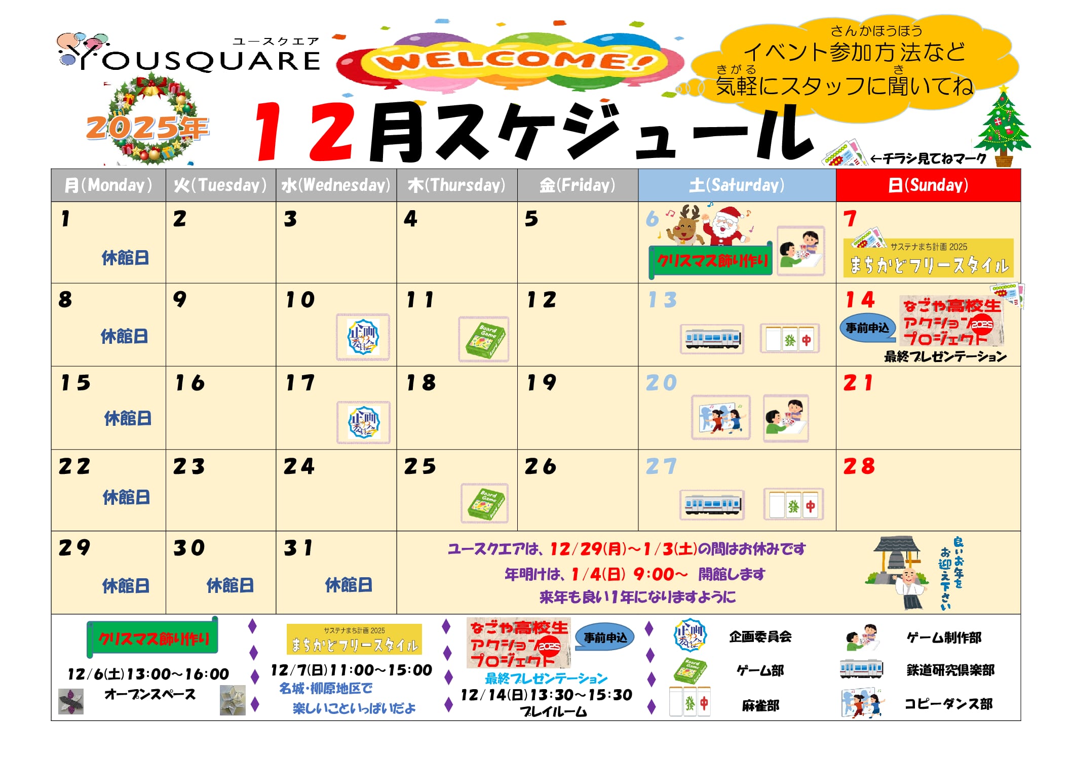 ・年末年始(12月29日から翌年1月3日)